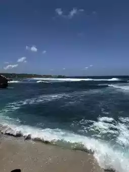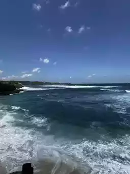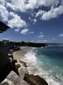 Cafe Pandan on Lembongan Island is located on a cliff near Crystal Bay, offering a spectacular view of the majestic waves and coastline. It's a special place where you can feel the energy of the ocean with your whole body while savoring drinks and snacks.