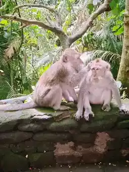 Our trip to Indonesia began in the Ubud area. I had read a lot about where to stay in Bali and explored all the regions. Ubud is located almost in the center of the island, and we came here for the tropical jungles ❤️. We wanted to find a hotel with a jungle view, and based on our budget, we found an excellent hotel, Sri Aksata Ubud Resort, with a wonderful private terrace overlooking a stream surrounded by jungles 😍😍😍. The view was stunning. The hotel itself was great. The furniture wasn’t new, but it added a special charm ❤️. The hotel grounds were huge, with a pool, though we didn’t use it much and didn’t swim. There’s even a private rice field on the property. Overall, we were thrilled. We stayed in Ubud for a total of 4 days. Since we wanted to see as much as possible during the trip, we spent three days on excursions. Another big advantage of staying in Ubud is that transfers for excursions pick you up easily without any extra charges, and it’s conveniently located to reach the main attractions. On the last day, we were moving to Nusa Lembongan, and in the morning, we decided to visit the famous Monkey Forest. It’s just a 10-minute walk from the hotel, which was very convenient. Oh, the monkeys are a separate love story 😍❤️—so funny, and it’s wonderful that they live in their natural habitat rather than in a zoo. Tickets are required for entry, and the price is quite affordable—just 100,000 Indonesian rupiahs per adult, which is about 450-500 rubles. It’s not wild jungle; everything is arranged for tourists, with plenty of staff on-site to ensure the monkeys don’t bother visitors. There’s also a creativity and arts school on the premises, where workshops and exhibitions are held. It’s a very pleasant place. Additionally, there are several local, colorful temples on the grounds.