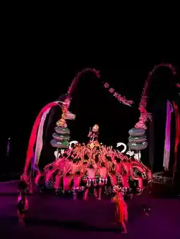 2. Then head to Melasti Beach, one of Bali’s most stunning spots with white sand and dramatic cliffs. Stay until evening to watch the Kecak dance there, a fiery, hypnotic performance under the open sky.