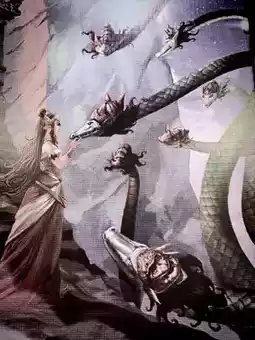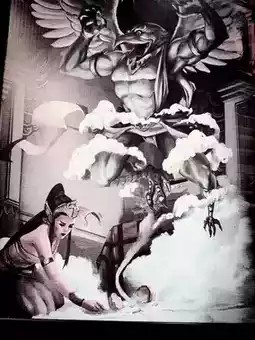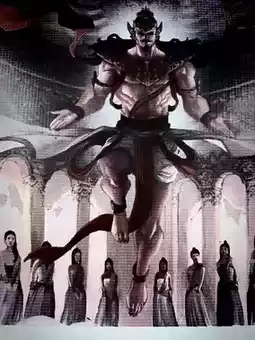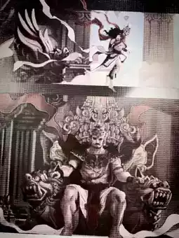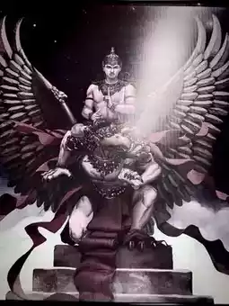 This is more than just a painting; it's a window, leading us into ancient Indian mythology: under the protection of Vishnu, Garuda spreads its wings in protection, ensuring the continuation of order and light in the world.