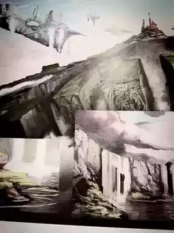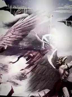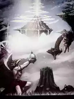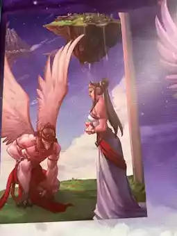 Encircled by celestial deities, a halo and sacred wings emerge behind them, as if narrating a celestial hymn of protection and war. Floating islands and seas of clouds create a mythical world of boundless vastness, inviting the viewer into this epic scroll spanning heaven and earth.