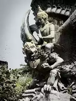 A common sight in Bali's villages and temples is stone carvings. Some of these carvings depict the faces of deities, others the forms of guardian animals. Over time, rain and moisture have nurtured green moss on their surfaces. The union of stone and moss is more than a natural coincidence, but a silent dialogue: the hard stone and the soft moss together weave a texture of time.