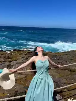 A 200-meter-long crescent-shaped white sandy beach, with water that gradually changes from light blue to deep blue. You can rent a beach chair to relax and watch the sea. There’s also an amazing cliffside restaurant nearby.