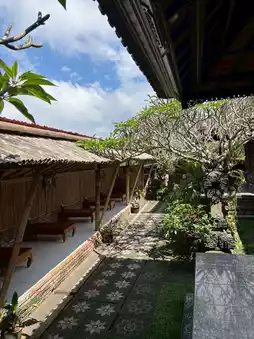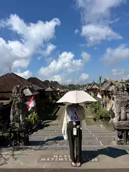 Penglipuran Traditional Village is a popular tourist spot known as the "most beautiful village" in Bali. 🌿✨ Traditional houses line both sides of the cobblestone streets, giving you a taste of Balinese life and culture. Villagers sell handmade crafts and Balinese sweets, so you can enjoy shopping while strolling around. ♡ The scenery, surrounded by flowers and greenery, is very photogenic and perfect for social media posts. 📸 This wonderful village is soothing to the soul, even just strolling around.