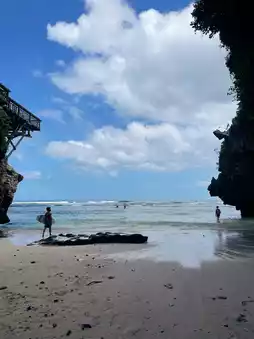 This beach is renowned as a surfing hotspot, attracting world-class surfers. The surrounding environment is tranquil, ideal for those seeking to connect with nature by the sea rather than sunbathing, as the beach is best suited for water activities during low tide.