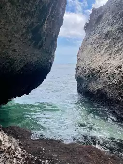 Suluban Beach, also known as Blue Point Beach, is located in the Uluwatu area on the Bukit Peninsula in Badung, Bali. It is situated near the famous Uluwatu Temple and Single Fin Bar, both popular spots for tourists and surfers.
