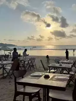 Let me share the ideal final stop for your Bali trip~! Located in Jimbaran, Bali, Hatiku is a great place to savor seafood while taking in a breathtaking sunset. It's also conveniently close to the airport, making it an excellent choice for your last stop. You can enjoy a delicious meal with a beautiful sunset before heading to the airport.