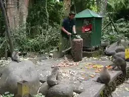 Adult tickets cost around IDR 80,000 (~$40). Inside, you can pay to feed the macaques or take photos with them, making it a perfect souvenir opportunity 📷. It's recommended to dress lightly and avoid bringing food or valuables to prevent the monkeys from snatching them away 🤣.