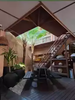 Just a short walk away, you'll find the Ubud Palace. In the evening, you can enjoy traditional dance performances, offering a cultural experience. There are also places like the Monkey Forest where you can experience nature up close, offering a unique experience even in the city. There are also many other attractions nearby, like rice terraces and waterfalls. I thought it would be better to stay for a few days and explore them at your own pace rather than just one or two.