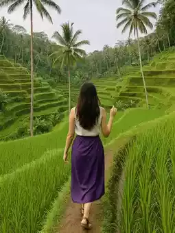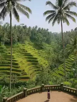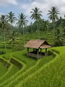 Located north of Ubud in Bali, the Tegalalang Rice Terraces are one of the island's most famous natural landscapes, featuring tiered rice paddies that stretch out in layers. The combination of lush green fields and palm trees creates a stunning view, making it a popular spot for photography enthusiasts.