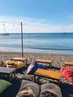 Famous for calm black volcanic sand 🏖️, crystal-clear waters 💎, and vibrant coral reefs 🌊. A top destination for snorkeling 🤿, scuba diving 🐠, and relaxing away from the crowds 🌴. Visitors can explore traditional fishing villages 🛶, enjoy sunrise views 🌅, and experience authentic Balinese culture.