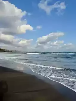 The beach is lined with black volcanic sand, and the sunsets here are absolutely breathtaking. You’ll often see local fishermen at work, surfers catching small waves, and a few travelers enjoying the peace and quiet. Bring a blanket, grab a coconut from a nearby stall, and just let time slow down.