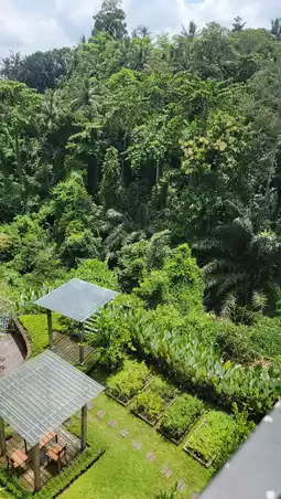 Gorgeous open and breezy lobby areas, including the bar and restaurant. The Indonesian and Mediterranean food was delicious. The fantastic infinity pool offers views over a steep cliff into a lush forest. We appreciated the swim-up bar. Our room was pleasant, featuring a large shower and reliable air conditioning. The Heavenly Spa by Westin Ubud was delightful; we participated in a prayer with incense and flowers before entering the treatment room where my feet were bathed in rose petals and peppermint water. The massage was superb and finished with tasty ginger tea, almonds, strawberries, and dark chocolate in the peaceful room.