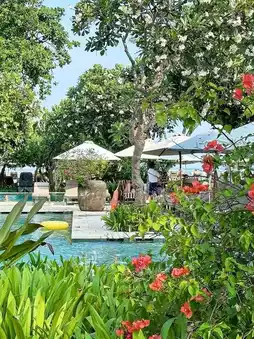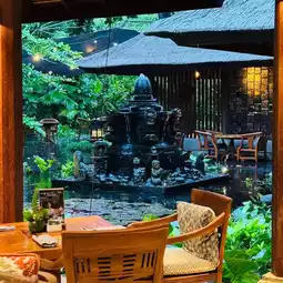 A beautiful resort located directly on the Sanur beachfront offering remarkable access to high-quality restaurants, including the Indonesian Orange Omang and the Italian Pizzaria, each known for quality ingredients and exciting offerings. The hotel's atmosphere is charming—you enter under tall bamboo ceilings, picturesque pavilions set on lily ponds, and traditional decorations that firmly ground the luxury experience in Balinese culture. The staff are incredibly polite and eager to assist with any needs. The spa area exudes a true 'zen' vibe, featuring a scented sauna, jacuzzi, and spa facilities. There's also a stunning, tranquil emerald green adults-only pool, perfect for a peaceful escape from the main pools filled with children. Overall, our stay here was delightful. We visited here as our final stop in Bali, and it served as a luxurious conclusion to a wonderful trip!
