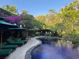 I’ve relished a thoroughly enjoyable 3-night stay here. Highlights include the two serene swimming pools, a jacuzzi nestled in the gardens, the gorgeous gardens themselves—so colorful, lively, joyous, and tropical. The elevated hillside setting is remarkably peaceful and calming, with bird songs echoing throughout the day. The yoga studio offers a stunning view, and I highly suggest the sunset yoga session. The staff were all friendly and efficient, while the on-site owners were very welcoming—I even had the chance to watch rugby with the owner at the bar, which was super fun! The WiFi is extremely fast, and there are complimentary transfers to and from Lovina main beach. But the biggest highlight for me was swimming with wild dolphins! Alamanda has its own boat and captain (his wife works as the receptionist), who was great on both excursions. Visiting Lovina during my 3-week solo trip to Bali, my main goal was to swim with dolphins, so I went both mornings. It was indescribably magical and special. Definitely opt for the 8am tour, as the earlier sunrise one can be too crowded. Although it was still busy, I saw numerous dolphins. It's a bit disheartening how the boats chase the dolphins, creating a race between vessels, but when they pause, and you glance under the sea to spot the dolphins, time seems to halt, enveloping you in an indescribable peace. I cherished my dolphin experience, as well as my time in Lovina and Alamanda. The only downside is that the resort rooms need some updating, including the towels, and breakfast is rather basic compared to other places I’ve stayed in Bali. Fruit isn’t listed on the menu, but you can request it, and they’ll provide. I would definitely stay here again for the setting and location 🙌🩷