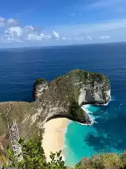 Once you arrive in Nusa Penida, you can rent a motorbike or join a daily tour package to explore iconic spots like Kelingking Beach, Broken Beach, and Crystal Bay. 🌴