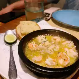 We started with garlic prawns served alongside crusty sourdough bread, followed by Basque-style clams in a sweet and spicy seafood sauce that paired beautifully with the bread too. For mains, we shared a half-and-half paella! This is a clever option for couples who can’t decide! I had the Paella de Marisco (seafood paella) while my husband went for the beef cheeks paella and both were rich, flavorful, and cooked to perfection.