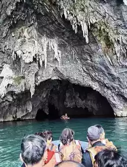 Dubbed the "Water Karst Museum"[!] Boat through three natural caves with jade-green waters. Best 📷 spot is at the "skylight" in the second cave chamber[!]