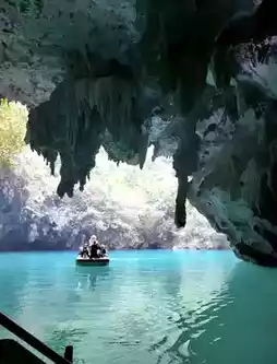 Explore underground karst caves by boat, where stalactite reflections resemble birds in flight. Use night mode 📷 for photos in dim lighting[!]
