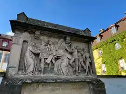 * Great spot for photos and views of the river and half-timbered houses.