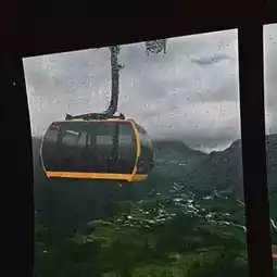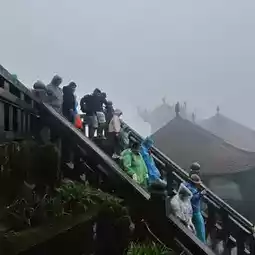 There was absolutely nothing left to do. The rain, wind, and fog were raging. It was so cold my hands were frozen. 🌧️🌪️ But how could I be discouraged? We had already made it this far. We continued on, taking the short cable car to the top of the mountain. This included the ticket we'd bought the first time. Anyone could have walked up, but not me. 55555555555