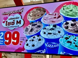 Currently, there is a promotion for size M, 2 cups for 99 baht. Dairy Queen regularly organizes discounts.