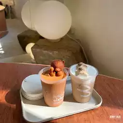 We didn't make it in time, the cakes were all gone!! We ordered Thai tea and coffee. The Thai tea was served with iced teddy bears. It was so cute.