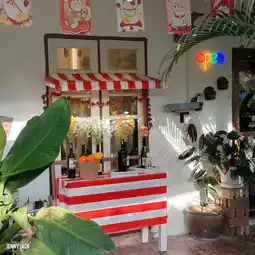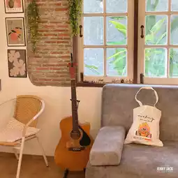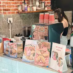 It is a secret cafe located in Soi Kafiws next to Ban Chang Sports Stadium. There are both indoor and outdoor seating areas. There are trees and flowers, giving a warm feel. Inside, there are only cute corners. I even saw the shop's cat, which is super cute. 🐈