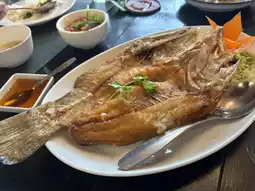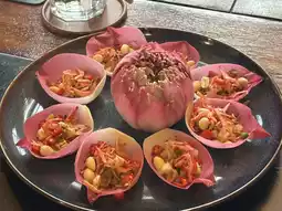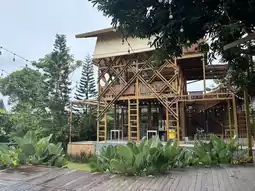 🪷 Bua Terrace Cuisine & Café is located in Ban Chang, Rayong. It is both a café and a restaurant. The shop has a shady bamboo-style atmosphere by a lotus pond. There are both air-conditioned and open-air areas.