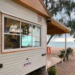 𓂃 A lovely, minimalist caravan-style accommodation located on the beach at Naphatharaphirom Beach, Sattahip-Rayong.