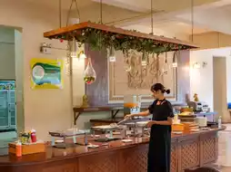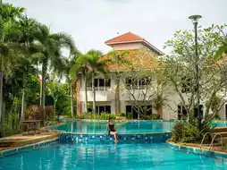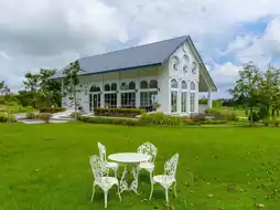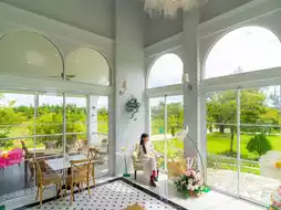 There's also a large swimming pool, bicycles, a beautiful lotus pond, and a charming cafe and restaurant at the entrance. The interior is decorated in an English style and serves delicious drinks, food, and desserts.