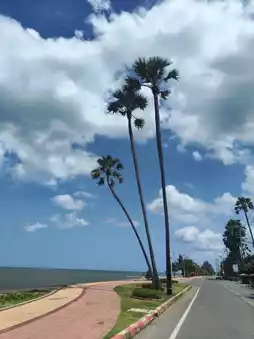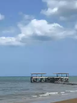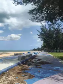 Pak Nam Pran Beach is another beach we love to relax at. It's relatively quiet and there aren't many tourists, making it perfect for relaxing and enjoying the view. It also boasts three palm trees, giving it a Miami-like vibe, making it a must-see for anyone visiting. On weekends, there's a beachfront market selling food and drinks, mostly fresh seafood. You can enjoy your meal in the well-maintained seating area.