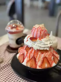 This cafe serves both savory and sweet dishes, including cakes, bingsu, and a wide variety of other dishes.