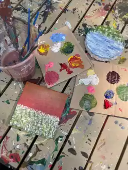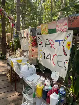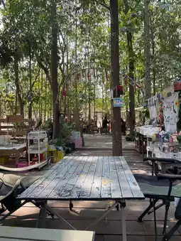 Perfect for working 📚 or taking beautiful photos 📸, as every corner is truly natural. The stylish wooden tables are adorned with painted patterns from art workshops. 🎨 Craft lovers will love this! There's also a "plaster painting" activity 🐰 or making stylish beaded necklaces, starting at under 100 baht. Enjoy so much fun you'll forget the time! 🌈