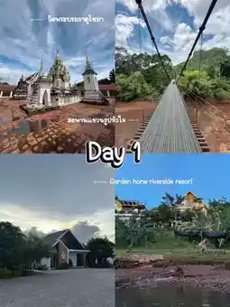 🏡Accommodation: Garden Home Riverside Resort We chose to stay here, not in the dam. The reason is that it's much cheaper than sleeping in the dam, and there are many options to choose from. This accommodation is newly opened. There are 4 individual houses and 1 family house. We stayed in a house for 2 people on weekdays for 1,290 baht. You can eat cold drinks here. There is also a restaurant.