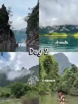 ⛅️Morning: Boat trip at Ratchaprapha Dam We went on a boat trip early in the morning, around 6 am, because there was a lot of fog in the morning and the weather was not hot. The normal package costs 1,800 baht to Khao Sam Kloe and feed the fish at Pa Nang Prai, which takes about 2 hours. After the trip, we went back to have breakfast at the accommodation.