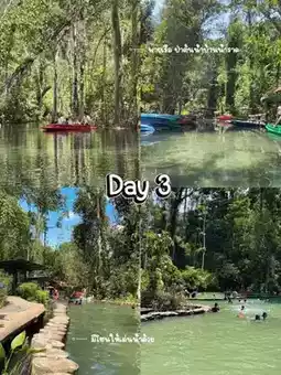 ⛅️ Morning: Ban Nam Rat Forest, Ban Thamnien Subdistrict. I recommend coming here at 9:00 AM so you can take beautiful pictures with clear water. If you are in the morning, there will be a lot of people playing in the water, so the water will be murky. There are 2 zones here: a paddling zone and a swimming zone. Paddling is fun. If you go all the way, it is not very far, but the view is repetitive. If you don't want to get too tired, if you find a beautiful view that you like and are satisfied with the photos, you can go back. 555