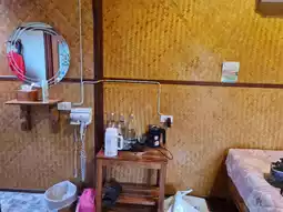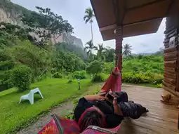 Bansuan Phutarn is a charming accommodation that offers a serene atmosphere. Located by a stream, it provides stunning views of mountains and cliffs. The room we booked was a standalone house equipped with air conditioning and convenient amenities. In front of the room, there was a hammock where we could relax and enjoy the scenery. The ambiance was delightful, though mosquitoes were quite prevalent at night.