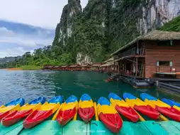 - For those who want beautiful pictures of Cheow Lan Dam, in addition to the view from the balcony, here has an Exclusive Boat Tour service, a boat trip with drinks and snacks, and a full view of Cheow Lan Dam.