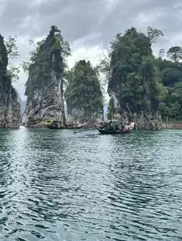 This trip is the epitome of "stepping into another world." Just cruising into Ratchaprapha Dam, surrounded by limestone mountains and emerald green waters, is enough to melt your heart! The highlight is the "Three Friends" or "Thailand's Guilin," where nature has arranged the rocks as grandly as in China. Every angle is picture-perfect! The air is cool and refreshing. Long-tail boat rides cost around 1,500–2,000 THB per boat, depending on the duration. Life jackets are provided, and safety is excellent. For those wanting to stay on the water, I recommend the floating rafts in the dam. The atmosphere is amazing, and stargazing at night is truly magical! Perfect for photography enthusiasts, those looking to relax, or even a quiet romantic date—it’s as enchanting as any international destination. 🌿📷✨