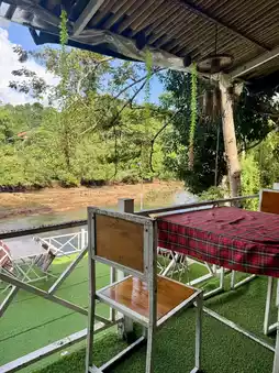 Review of accommodations near Cheow Lan Dam. Perfect for those who want to... Take a morning boat trip to Cheow Lan Dam. Conveniently located, no need to drive far or wake up early. The accommodations are fully equipped with TVs, refrigerators, and air conditioning. There's also a dining area where you can enjoy a riverside meal with a wonderful atmosphere.