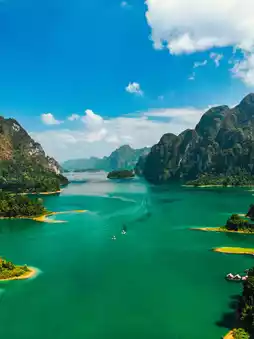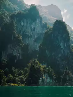2. Cheow Lan Lake: An artificial lake created in 1982 after the construction of the Ratchaprapha Dam. Its emerald waters surrounded by sheer limestone cliffs are the hallmark of Khao Sok.