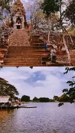 Wat Ek Phnom: An ancient temple from the 11th century. The lintel is carved with a depiction of the Churning of the Milk Ocean, as if telling an ancient story. On the way to the temple, you'll see endless rice paddies and small villages, like a beautiful painting~