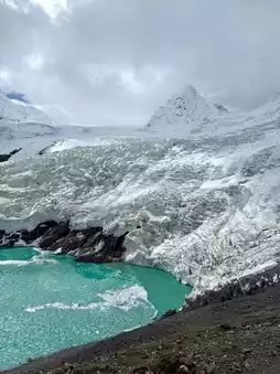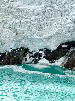 - May-June: Ice lake begins to thaw, blue ice and meltwater coexist