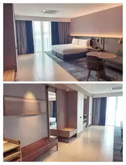 Four Points by Sheraton Desaru is a classic four-star hotel under the Marriott Group, but many of its stores have reached the standard of entry-level five-star hotels! 🏨✨ The hotel is modern and luxurious in design, and the lobby combines exquisite design and business atmosphere, reflecting the fashionable charm of young style and the noble temperament of luxury. 🛋️💖 The gym is spacious and well-equipped, allowing you to stay in shape while on vacation. 🏋️♀️
