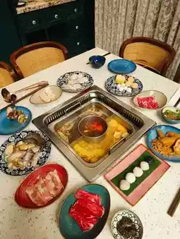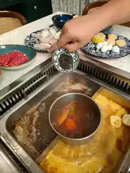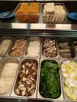 The buffet line was full of fresh ingredients — meat, seafood, veggies, and desserts. My favorite was the crispy snacks paired with the comforting soup base. A must-visit pit stop for travelers who love both food and local culture.