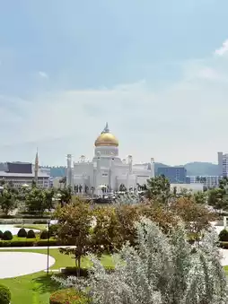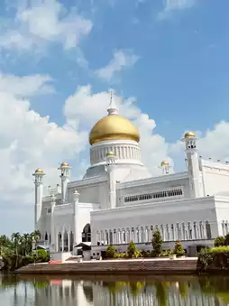Omar Ali Saifuddien Mosque appearing to float on its artificial lagoon