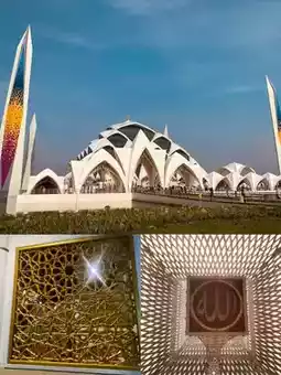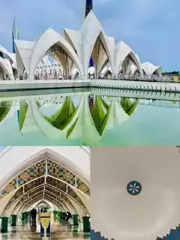 Built on a lake, the mosque's white structure and green dome are stunning against the backdrop of blue sky and water. From afar, it resembles a dreamy floating palace. Up close, the details are even more impressive: intricate carvings on the walls and geometric patterns showcase Islamic art, each element seemingly whispering a story.