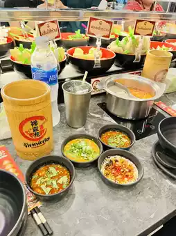 Hot pot lovers, this is a must-try! This restaurant specializes in its fragrant, tongue-numbing Mala soup. You can choose your spiciness level, whether mild or extra spicy. 🥘✨ They also offer 4-5 other soup bases. We recommend the dog bone and truffle mushroom soup, featuring fresh ingredients like meat, seafood, meatballs, and a variety of vegetables. Pair it with their signature dipping sauce for a truly satisfying experience. The restaurant's atmosphere is friendly, airy, and comfortable, perfect for couples or groups of friends. The staff are also prompt and always ready to refill the pot. ⏰ Open daily from 11:00 AM to 10:00 PM, it's a lively lunchtime experience or a cozy evening atmosphere. This restaurant caters to both shabu lovers and those seeking authentic Mala flavors for a full pot of deliciousness!