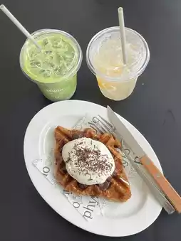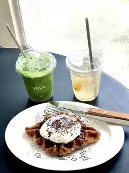 Phylo Cafe is a cafe in Bang Kruai, Nonthaburi. The cafe has a mid-century style and is also pet-friendly, perfect for animal lovers. It's a cafe with a great vibe, beautifully lit with mirrors that let in natural light, making for some amazing photos. They also offer an all-day brunch menu. Besides the beautiful cafe and its many photo spots, the food, drinks, and desserts are also delicious. Come and try it!